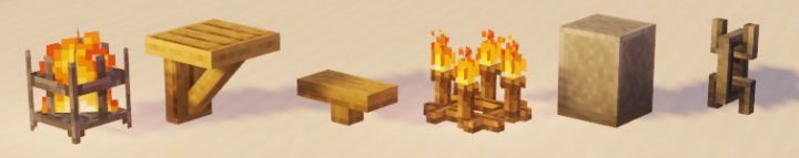 Мод на декоративные блоки Decorative Blocks является небольшим декоративным модом, который был создан с помощью mcreator. В игре появятся такие декоративные блоки, как жаровня, сиденья и опоры из дерева, столб из камня, блок цепи и канделябр.